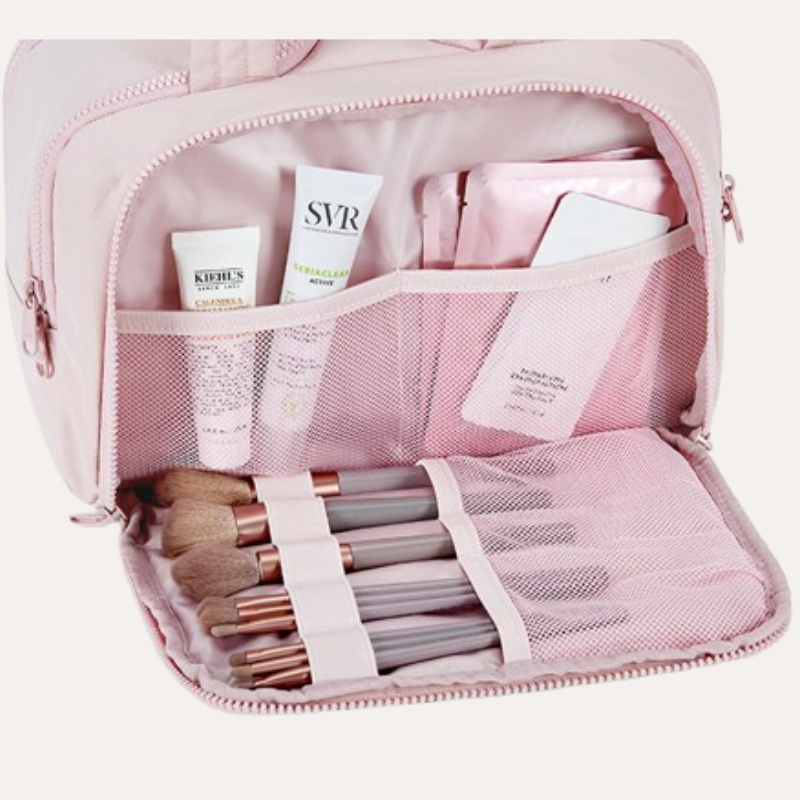 Esta es una bolsa extremadamente práctica y se adapta a varios productos. Las cremalleras son bonitas y suaves. ¡También hay muchos compartimentos! Muy bonito para organizar productos para un viaje. Elimina la necesidad de usar varias bolsas. Me encanta. Además, es estéticamente agradable. Minimalista pero elegante.